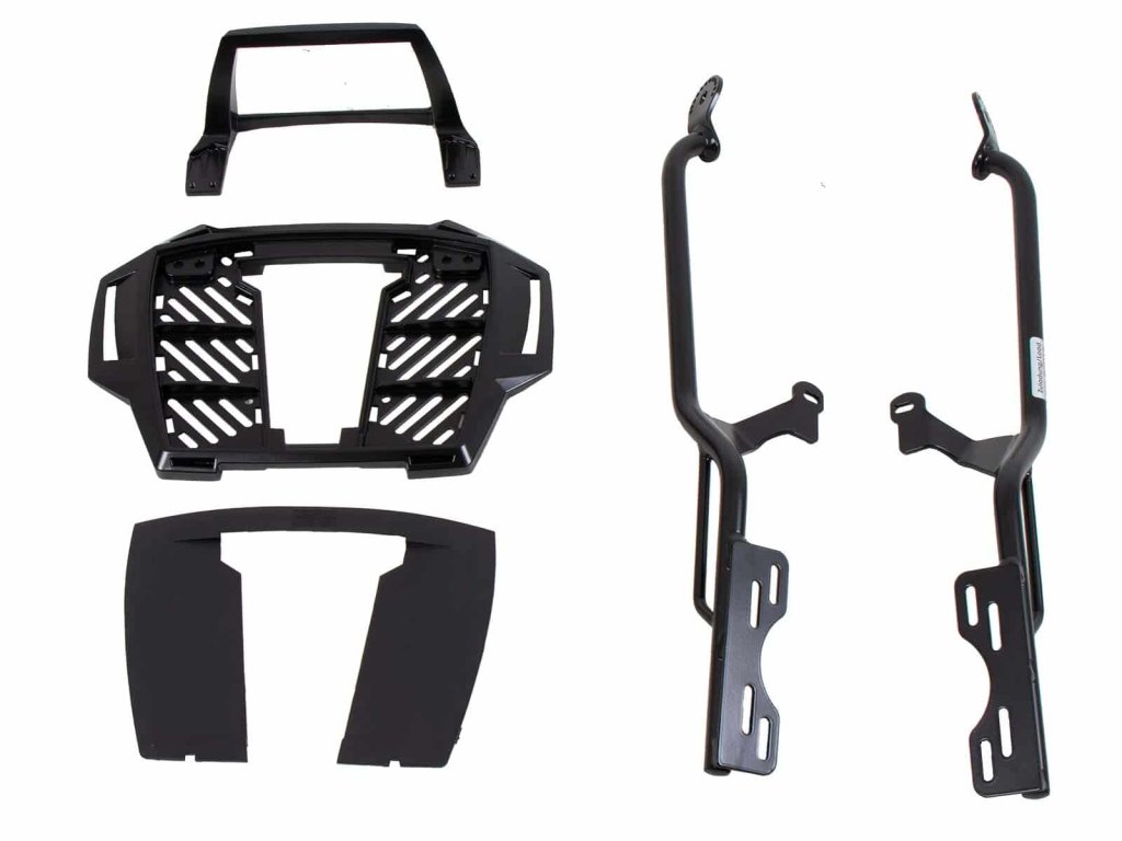 Držák TopCasae Alurack je setava sady spojovacího materiálu, dle typu motocyklu a hliníkového plata Hepco&Becker, s vyjímatelným madlem. Zamykatelně pasují na to všechny Hepco&Becker TopCase, které nemají v sériové výbavě plastový adaptér.