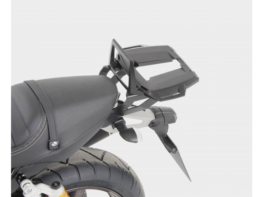 Držák TopCasae Alurack je setava sady spojovacího materiálu, dle typu motocyklu a hliníkového plata Hepco&Becker, s vyjímatelným madlem. Zamykatelně pasují na to všechny Hepco&Becker TopCase, které nemají v sériové výbavě plastový adaptér.
