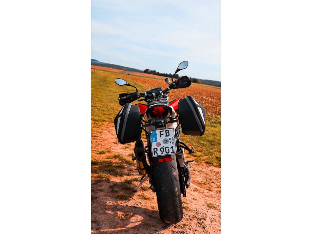 - Určeno pro sériový stav motocyklu. Není zkoušeno s jinými typy výfuků, držáků SPZ, směrovek, zadního blatníku, než originálně instalovanými! Dbeje při instalovaných neoriginálních dílech, aby zůstala dostatečná vzdálenost od výfuků, aby vyústění výfukových plynů nesměřoval na, či do blízkosti brašen a kufrů, aby směrovky a zadní světlo zůstalo bezpečně viditelné.