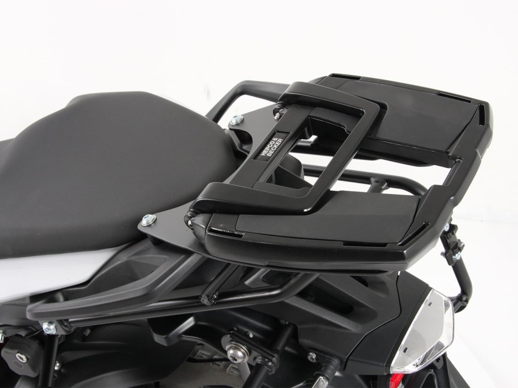 Držák TopCasae Easyrack je setava sady spojovacího materiálu, dle typu motocyklu a hliníkového plata Hepco&Becker, se zaklapovacím madlem. Zamykatelně pasují na to všechny Hepco&Becker TopCase, které nemají v sériové výbavě plastový adaptér.