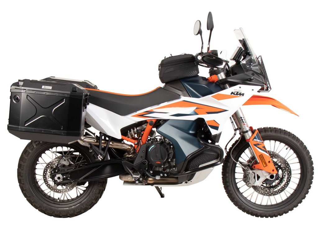 Nerezová sada nosičů kufrů s výřezem, včetně černých kufrů s výřezem Xplorer CutOut, pro KTM 890 Adventure / R / Rally (2023-)