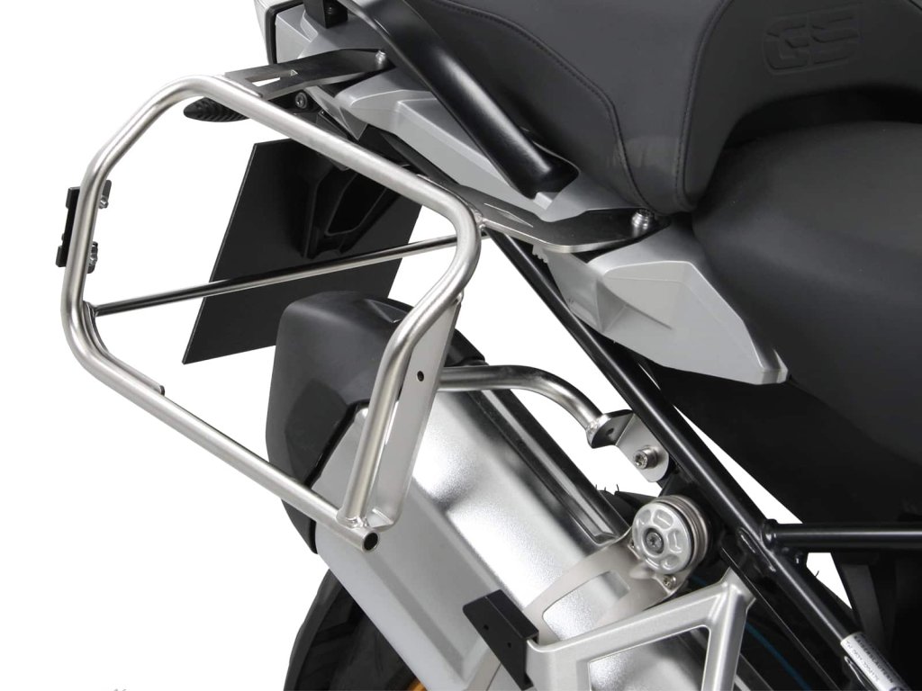 Nerezová sada nosičů kufrů s výřezem, včetně stříbrných kufrů s výřezem Xplorer CutOut, pro BMW R1250GS (2018-2023)