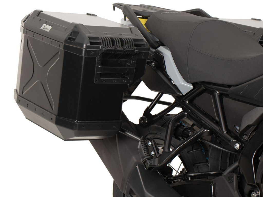 Černá sada držáků kufrů s výřezem, včetně černé sady kufrů Xplorer CutOut, pro Suzuki V-Strom 800 DE (2023-)
