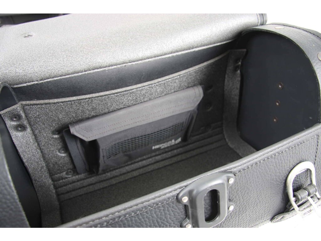 - Zamykatelná kožená brašena, vyráběna výhradně ručním zpracováním, pro přidělání na Hepco&Becker Solorack, pomocí popruhů.