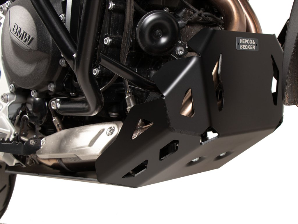Samozřejmě, modelově specificky tvořeny, ze 4mm. silného duralového, vysoce pevného plechu. Při návrhu tvaru, Hepco&Becker dbal na to, aby bylo i nadále zajištěné dostatečné proudění vzduchu, dešťové, či potoční vody jak, kvůly chlazení, tak i pro udržení čistoty a vzhlerdu okolo motoru.