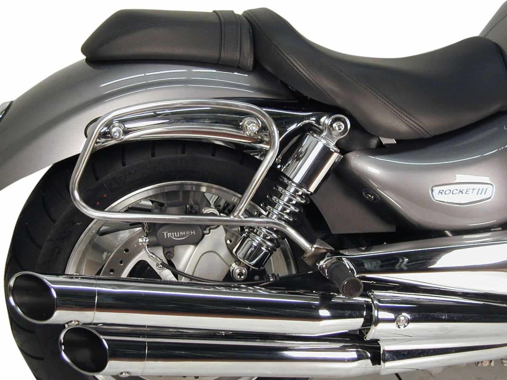 Chromovaný trubkový kožený držák brašen pro Triumph Rocket III (2004-2009)