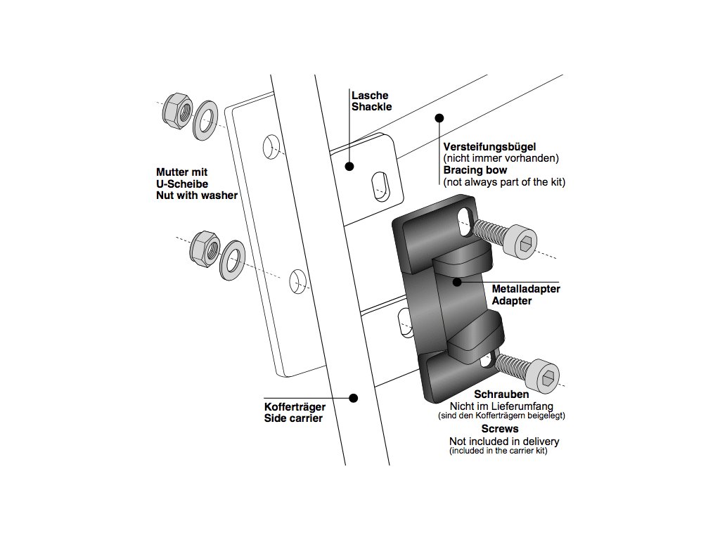 Tento adapter poskytuje spojení mezi bočními kufry a držáky kufrů.
