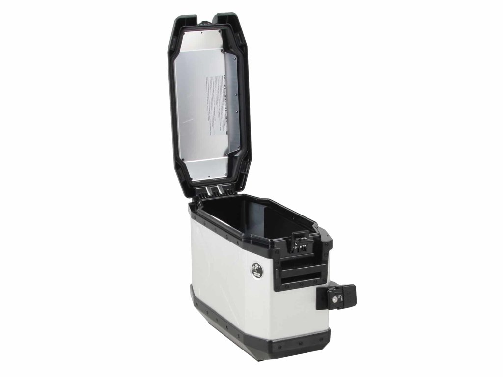 Boční hliníkový kufr Xplorer 30 stříbrný levý