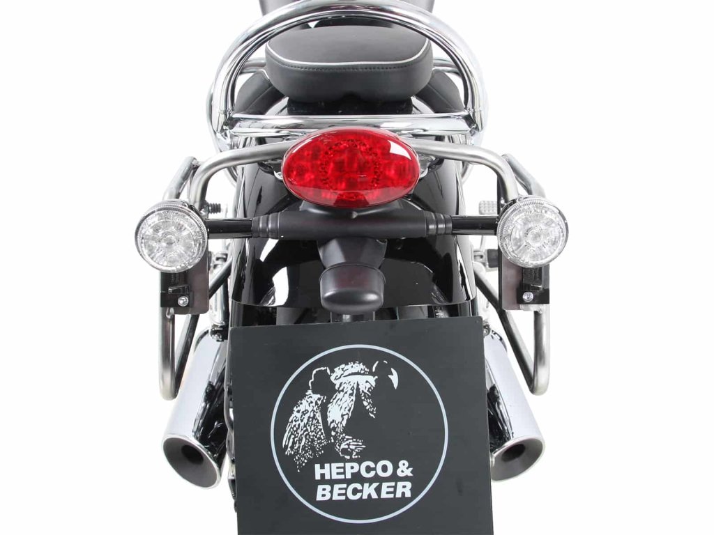 Napevno našroubované držáky bočních kufrů od Hepco&Becker , jsou pevně spojeny s motocyklem. Na tito držáky pak jsou použitelné, prakticky všechny boční kufry Hepco&Becker, od 30l. a výše. Kufry jsou pak pevnými kovovými zámky přizamknuty k těmto drákům. Víka kufrů jsou také zamykatelné a tak jsou zajištěny i proti krádeži. Protikusy zámků, které se šroubují na tito držáky a do kterých se "zakusují" zámky, jsou pak součástí dodávky kufrů.