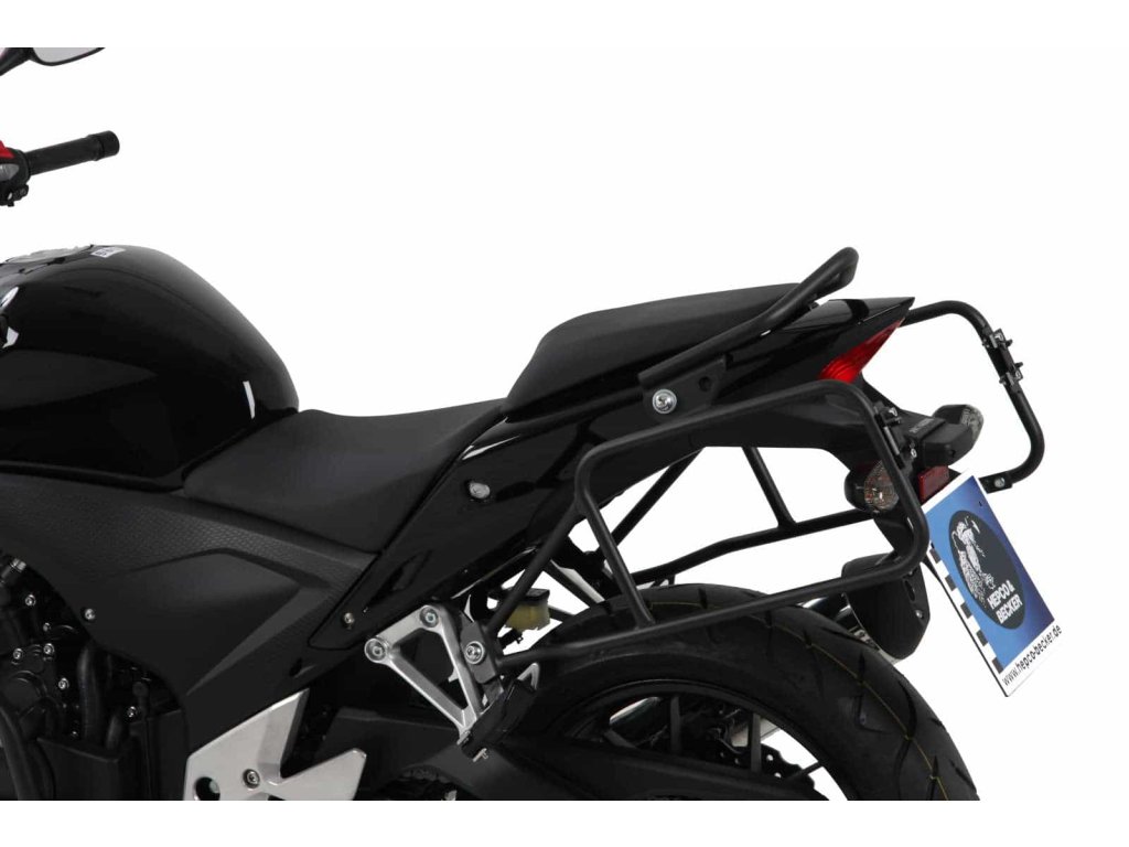 Napevno našroubované nenápadné držáky na rámu, na které pak rychloupínacími bajonetovými čepy během chvilky připevníte, či sundáte rámy pro boční kufry, od Hepco&Becker , jsou pevně spojeny s motocyklem. Na tito držáky pak jsou použitelné, prakticky všechny boční kufry Hepco&Becker, od 30l. a výše. Kufry jsou pak pevnými kovovými zámky přizamknuty k těmto drážkům. Víka kufrů jsou také zamykatelné a tak jsou zajištěny i proti krádeži. Protikusy zámků, které se šroubují na tito držáky a do kterých se "zakusují" zámky, jsou pak součástí dodávky kufrů.