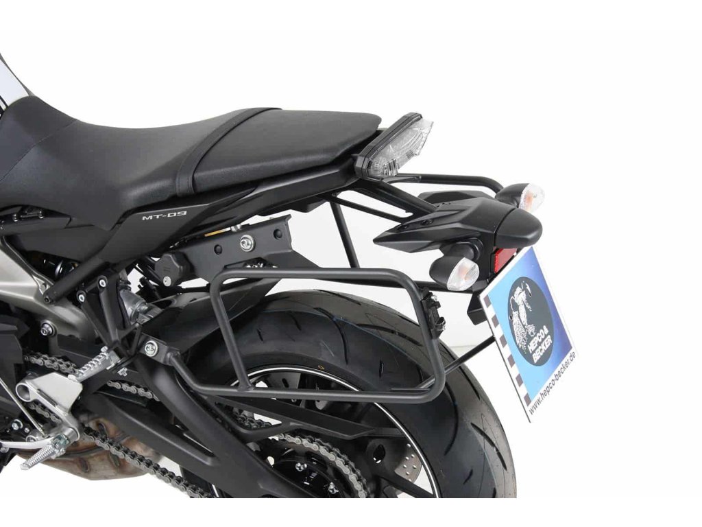Napevno našroubované nenápadné držáky na rámu, na které pak rychloupínacími bajonetovými čepy během chvilky připevníte, či sundáte rámy pro boční kufry, od Hepco&Becker , jsou pevně spojeny s motocyklem. Na tito držáky pak jsou použitelné, prakticky všechny boční kufry Hepco&Becker, od 30l. a výše. Kufry jsou pak pevnými kovovými zámky přizamknuty k těmto drážkům. Víka kufrů jsou také zamykatelné a tak jsou zajištěny i proti krádeži. Protikusy zámků, které se šroubují na tito držáky a do kterých se "zakusují" zámky, jsou pak součástí dodávky kufrů.