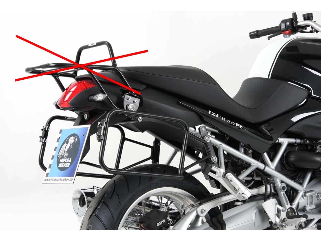 Napevno našroubované nenápadné držáky na rámu, na které pak rychloupínacími bajonetovými čepy během chvilky připevníte, či sundáte rámy pro boční kufry, od Hepco&Becker , jsou pevně spojeny s motocyklem. Na tito držáky pak jsou použitelné, prakticky všechny boční kufry Hepco&Becker, od 30l. a výše. Kufry jsou pak pevnými kovovými zámky přizamknuty k těmto drážkům. Víka kufrů jsou také zamykatelné a tak jsou zajištěny i proti krádeži. Protikusy zámků, které se šroubují na tito držáky a do kterých se "zakusují" zámky, jsou pak součástí dodávky kufrů.