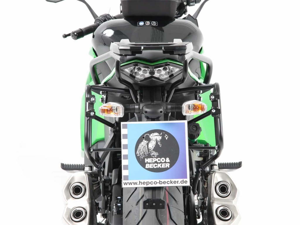Napevno našroubované nenápadné držáky na rámu, na které pak rychloupínacími bajonetovými čepy během chvilky připevníte, či sundáte rámy pro boční kufry, od Hepco&Becker , jsou pevně spojeny s motocyklem. Na tito držáky pak jsou použitelné, prakticky všechny boční kufry Hepco&Becker, od 30l. a výše. Kufry jsou pak pevnými kovovými zámky přizamknuty k těmto drážkům. Víka kufrů jsou také zamykatelné a tak jsou zajištěny i proti krádeži. Protikusy zámků, které se šroubují na tito držáky a do kterých se "zakusují" zámky, jsou pak součástí dodávky kufrů.