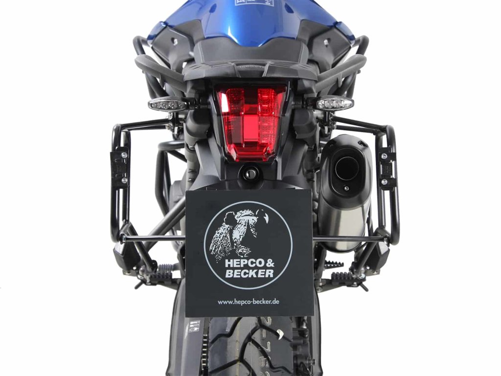 Napevno našroubované nenápadné držáky na rámu, na které pak rychloupínacími bajonetovými čepy během chvilky připevníte, či sundáte rámy pro boční kufry, od Hepco&Becker , jsou pevně spojeny s motocyklem. Na tito držáky pak jsou použitelné, prakticky všechny boční kufry Hepco&Becker, od 30l. a výše. Kufry jsou pak pevnými kovovými zámky přizamknuty k těmto drážkům. Víka kufrů jsou také zamykatelné a tak jsou zajištěny i proti krádeži. Protikusy zámků, které se šroubují na tito držáky a do kterých se "zakusují" zámky, jsou pak součástí dodávky kufrů.