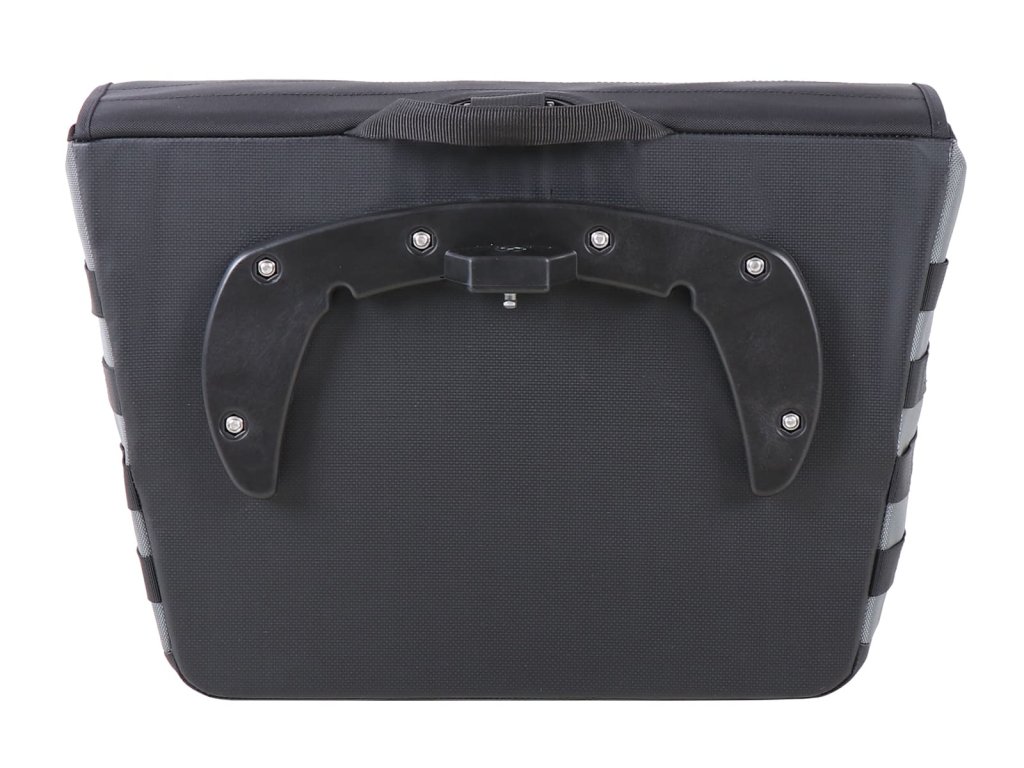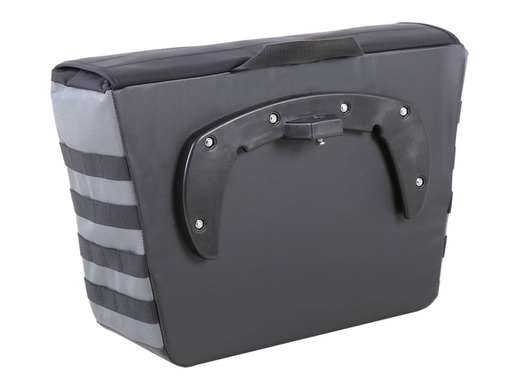 Der schmale und dezente Hepco&Becker C-Bow Seitenhalter ist der Träger für die Xtravel C-Bow Taschen. Einfach aufstecken und diebstahlsicher abschließen. Mit ihrem Packvolumen ist diese Tasche prädestiniert für kurze Wochenendtrips und Tagestouren. Dank des wasserabperlenden Außenmaterials und des absolut wasserdichten Innenfutters aus Polyester mit Rolltopverschluss bleibt der Inhalt auch bei Regenfahrten trocken. Die Rückwand aus abriebfestem Tarpaulin schafft Stabilität und erleichtert die Reinigung. Der zentrale G-Hook aus Aluminium lässt sich leicht bedienen und schließt zuverlässig. Ein Tragegriff erleichtert zudem die Handhabung. Die seitlichen MOLLE-Systeme, inspiriert von Militärtextilien, ermöglichen die Befestigung von optionalem Zubehör. Die Taschen können bei voller Beladung mittels Verbindungsgurt gegenseitig verspannt werden.
