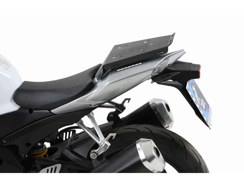 Problematiku přepravy zavazadel na sportovních motocyklech, zná každý vlastník této kategorie. Hepco&Becker ale elegantně řeší tuto otázku, se sérií držáků zavazadel místo zadní sedačky. To je Sportrack, který se jednoduše připne na místo sedadla spolujezdce a tak zamykání spočívá v ovládání originálním klíčem od motocyklu. Průvlaky na hranách, skýtají bezpečné úchytové body, pro protažení popruhů, např.: 740012, pro připnutí zavazadla. V případě potřeby se dá zvětšit ložná plocha pomocí rozšíření držáků zavazadel, např.: 610052 či 610053 či 800000. Dá se vybavit i destičkou rychloupínací sady BASIC - 516200 , která umožní bleskové připnutí a odepnutí zadních brašen a tankvaků Hepco&Becker Street, či Royster. Některé z těchto brašen, mají již v základní výbavě tuto rychloupínací sadu, což je v popisu zboží uvedeno!