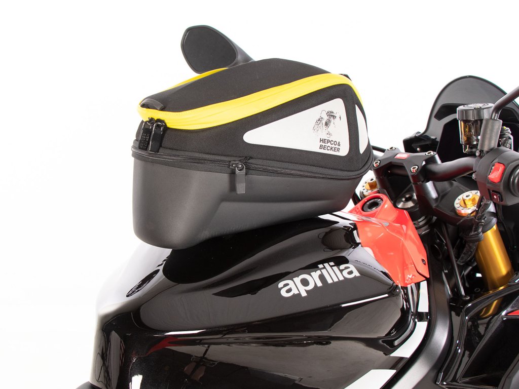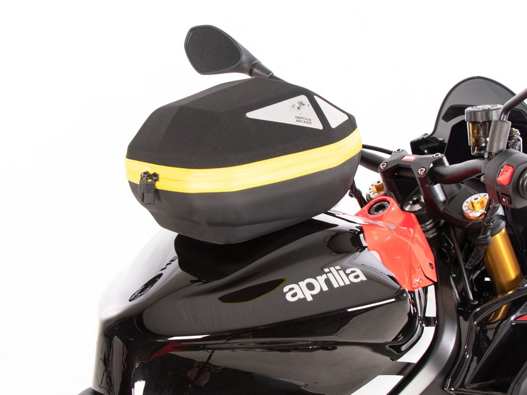 - Vak na nádrž Hepco&Becker se jednoduše nasadí a díky důmyslnému mechanismu, se slyšitelně uzamkne na tankovém kroužku.
