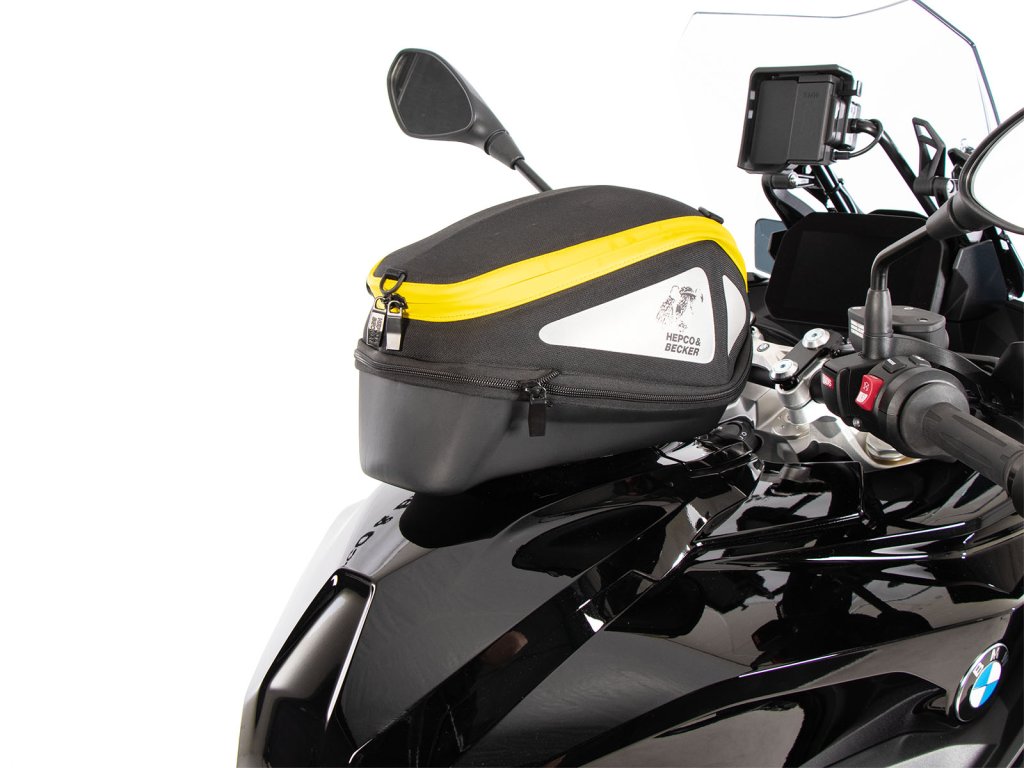 - Vak na nádrž Hepco&Becker se jednoduše nasadí a díky důmyslnému mechanismu, se slyšitelně uzamkne na tankovém kroužku.
