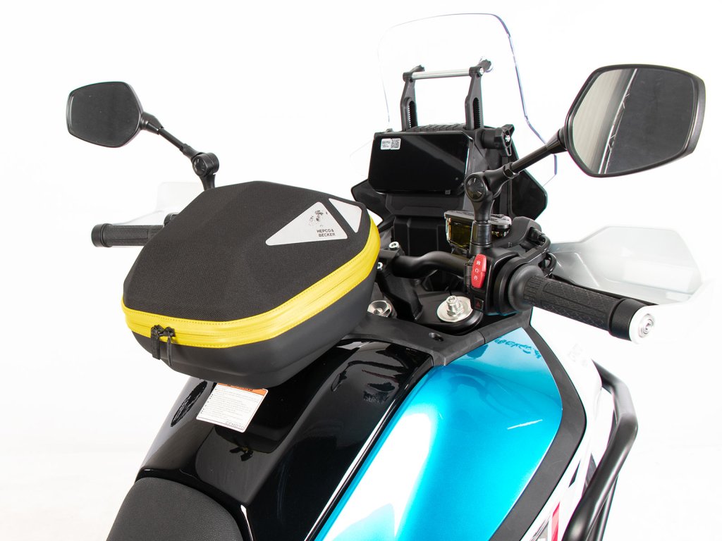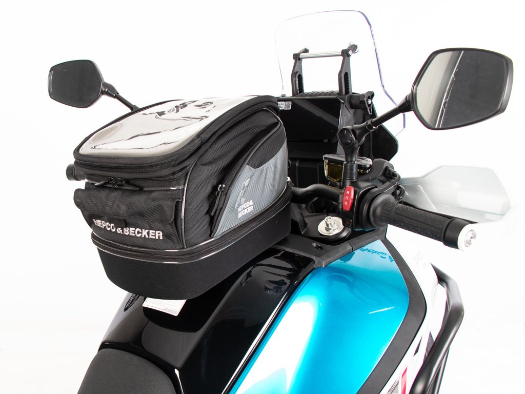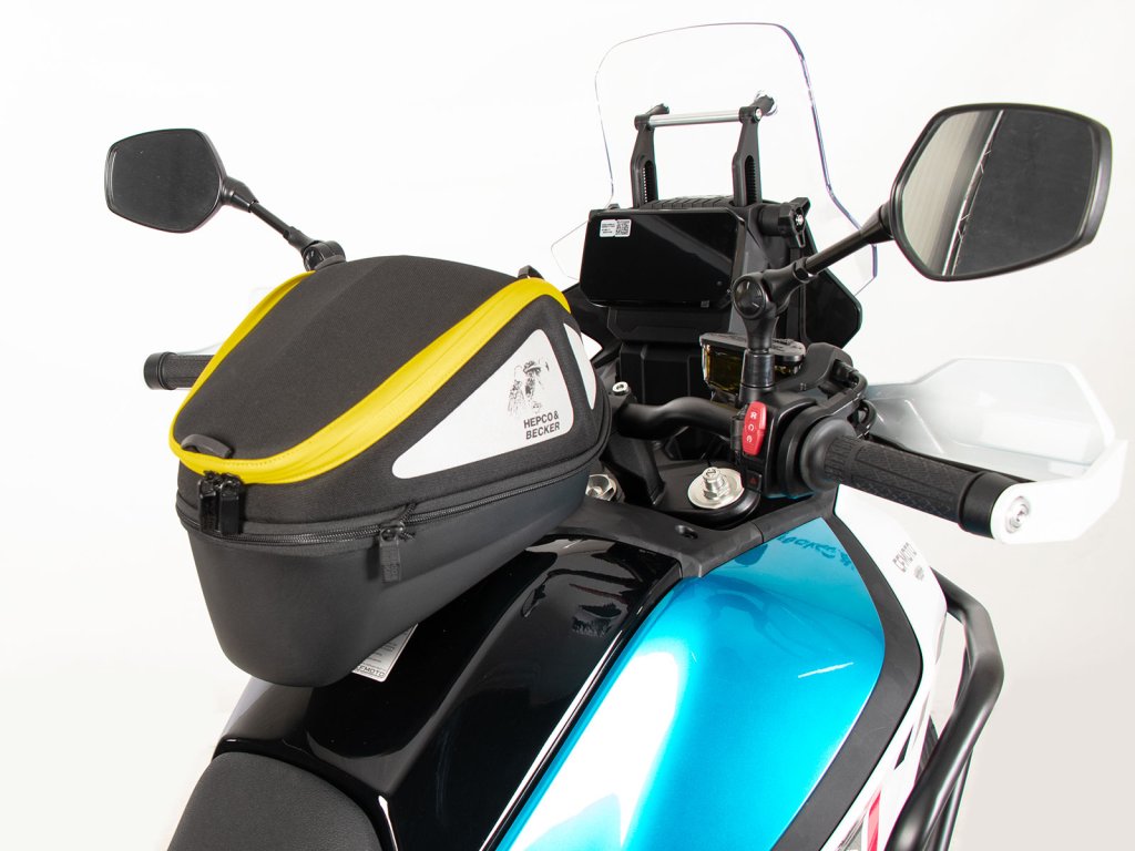 - Vak na nádrž Hepco&Becker se jednoduše nasadí a díky důmyslnému mechanismu, se slyšitelně uzamkne na tankovém kroužku.