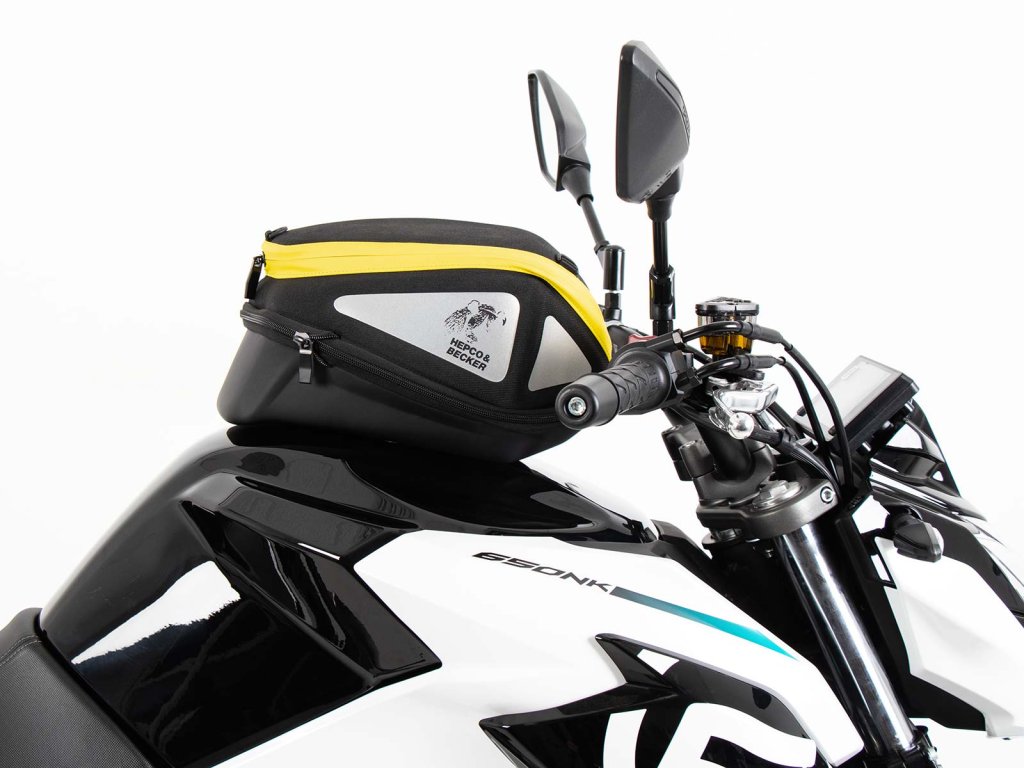 - Vak na nádrž Hepco&Becker se jednoduše nasadí a díky důmyslnému mechanismu, se slyšitelně uzamkne na tankovém kroužku.