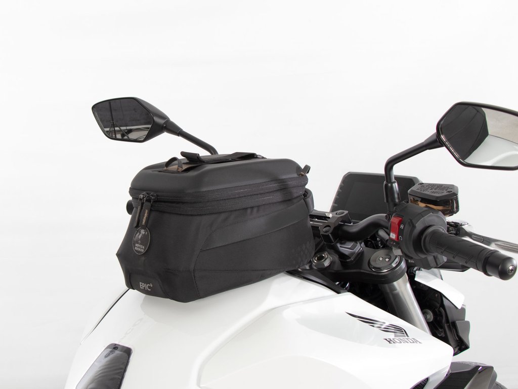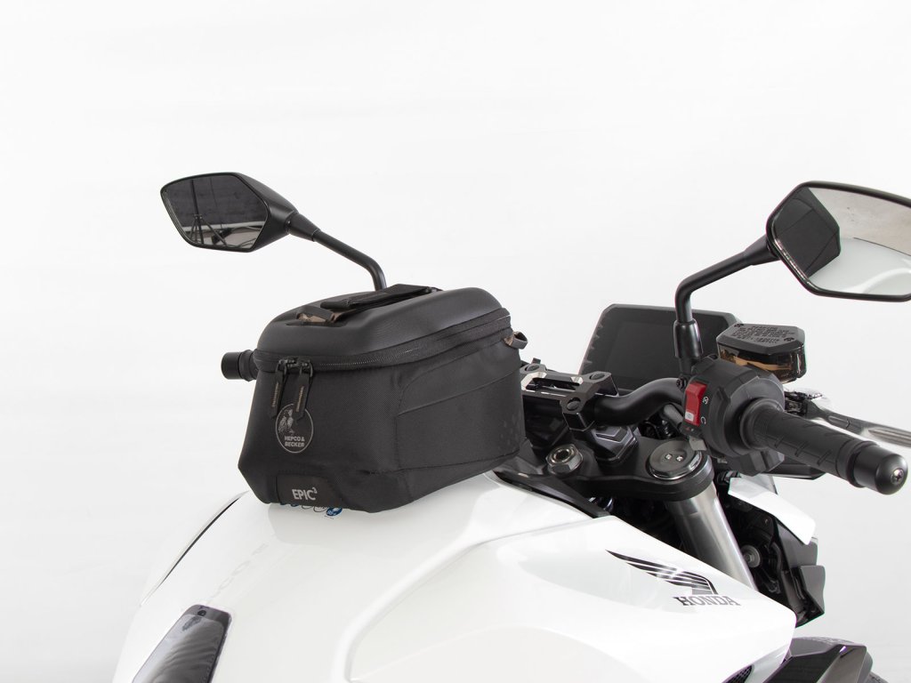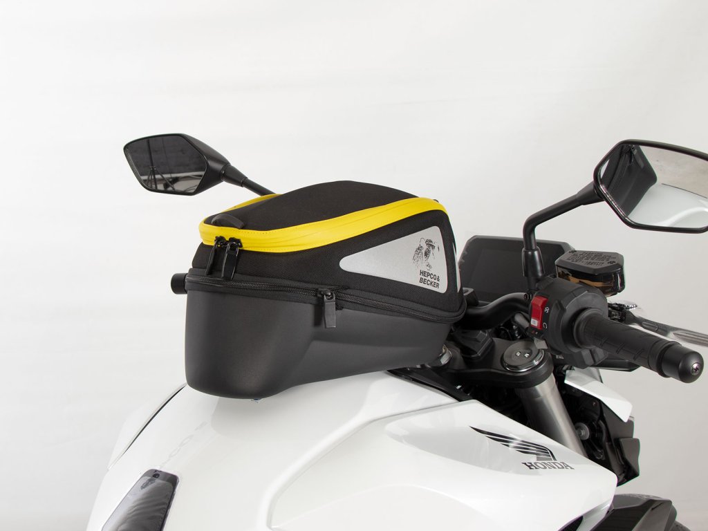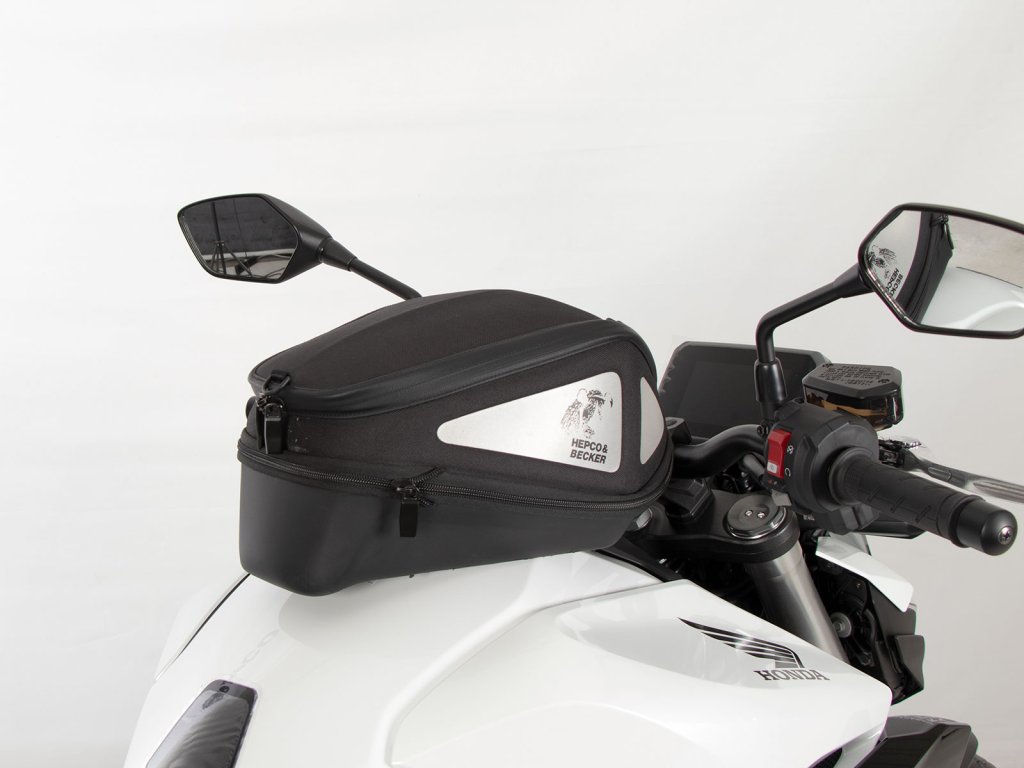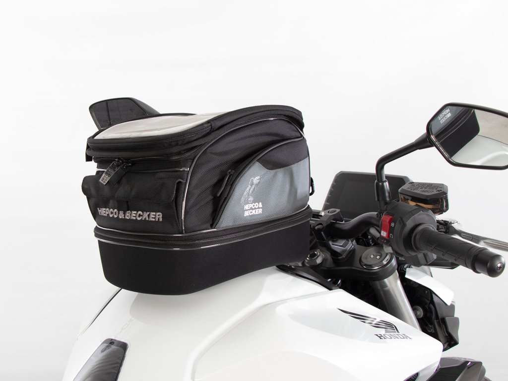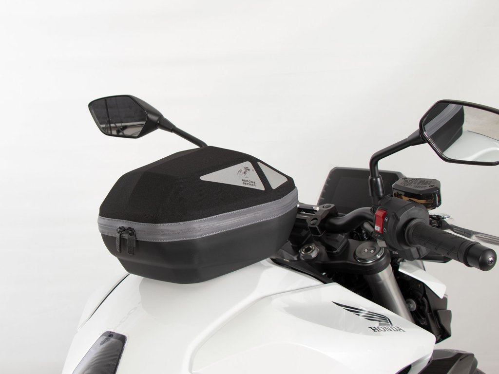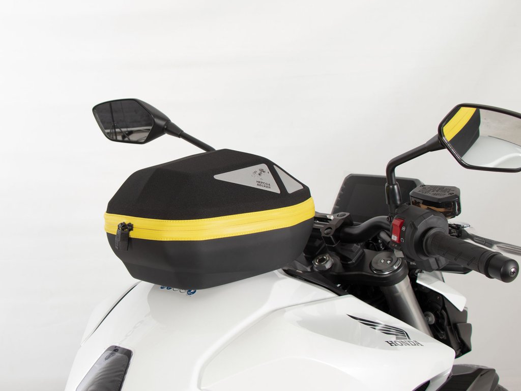 - Vak na nádrž Hepco&Becker se jednoduše nasadí a díky důmyslnému mechanismu, se slyšitelně uzamkne na tankovém kroužku.