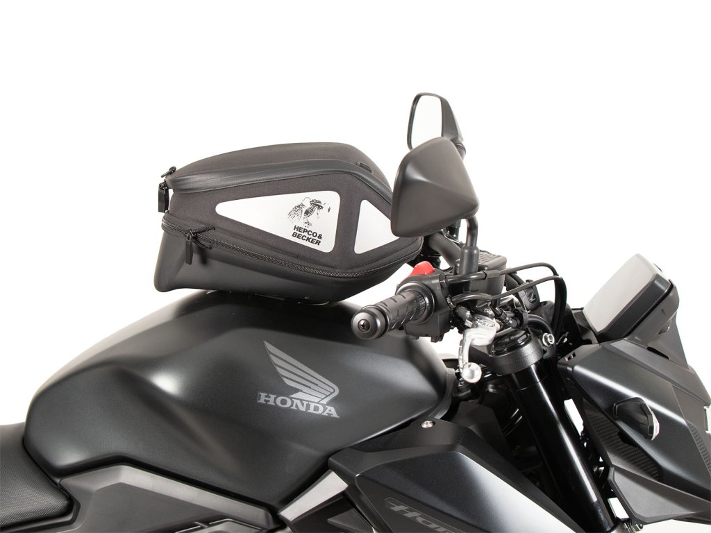 - Vak na nádrž Hepco&Becker se jednoduše nasadí a díky důmyslnému mechanismu, se slyšitelně uzamkne na tankovém kroužku.