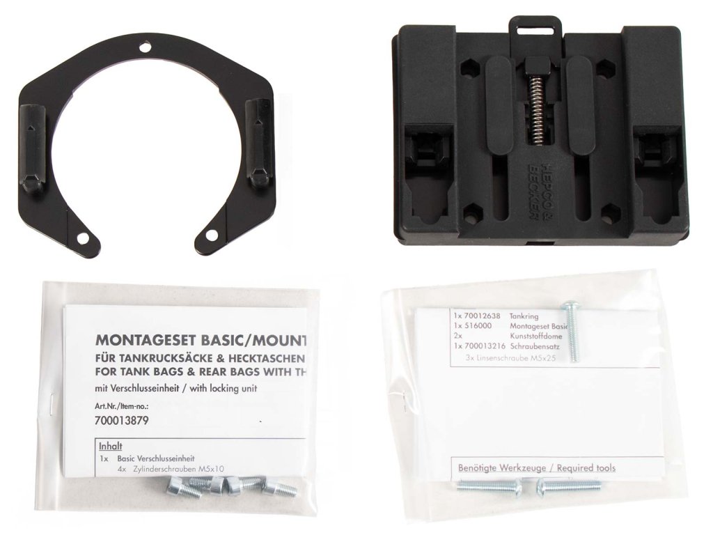 Součástí dodávky je tankový kroužek BASIC a protikus, který lze individuálně přišroubovat k tankvaku v závislosti na tvaru nádrže a úhlu řídítek.