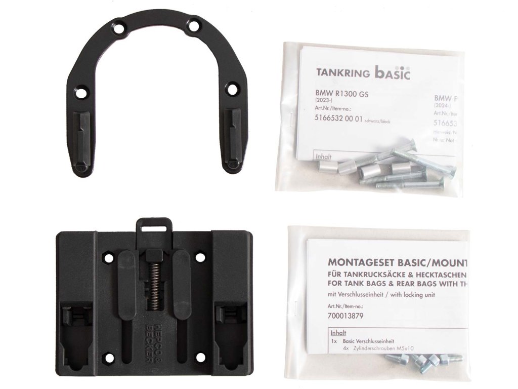 Součástí dodávky je tankový kroužek BASIC a protikus, který lze individuálně přišroubovat k tankvaku v závislosti na tvaru nádrže a úhlu řídítek.