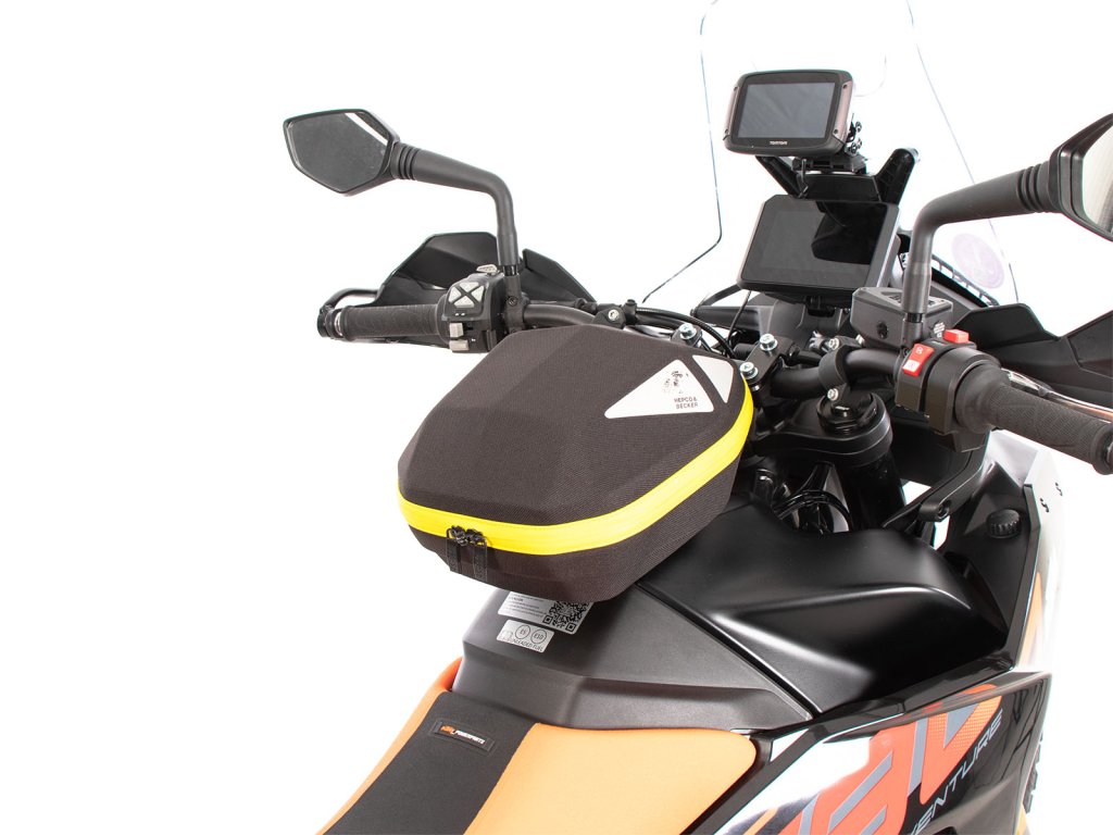 - Vak na nádrž Hepco&Becker se jednoduše nasadí a díky důmyslnému mechanismu, se slyšitelně uzamkne na tankovém kroužku.