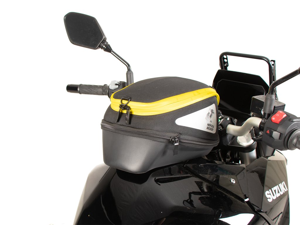- Vak na nádrž Hepco&Becker se jednoduše nasadí a díky důmyslnému mechanismu, se slyšitelně uzamkne na tankovém kroužku.