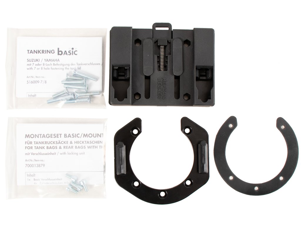 Součástí dodávky je tankový kroužek BASIC a protikus, který lze individuálně přišroubovat k tankvaku v závislosti na tvaru nádrže a úhlu řídítek.