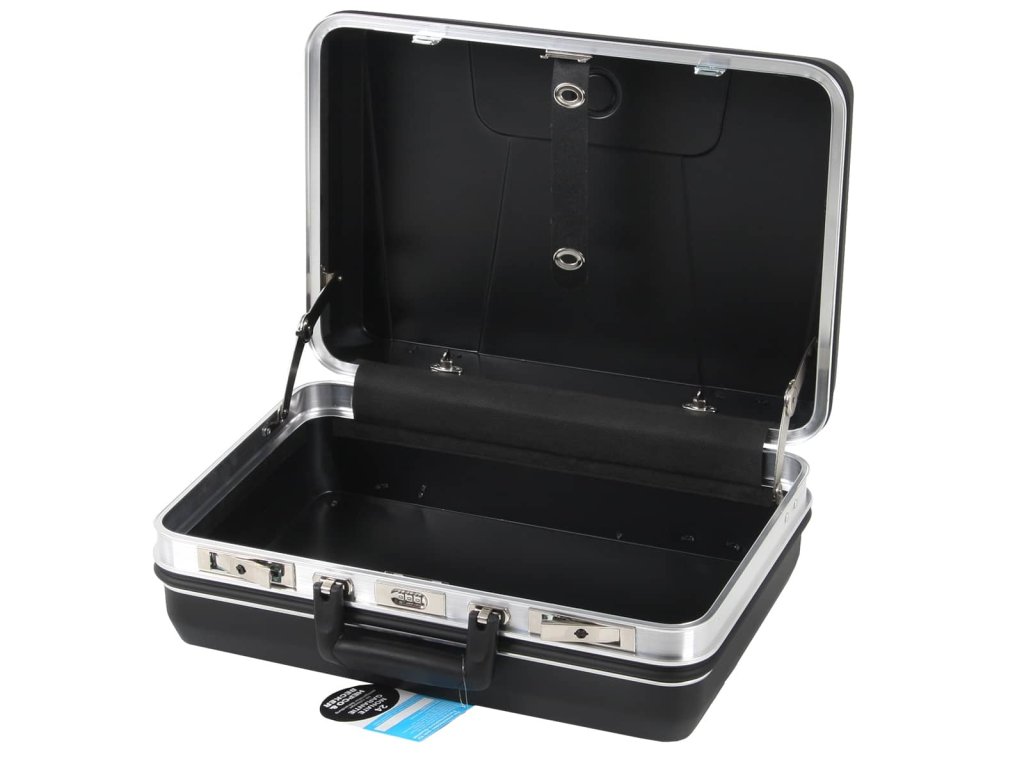 Der abschließbare Koffer, der auch gerne von Lehrlingen genutzt wird, steht entweder als klassischer Werkzeugkoffer in verschiedenen Größen zur Verfügung, als auch als Leerkoffer inkl. Schaumstoff, in dem man ohne Probleme auch Messgeräte sicher und platzsparend transportieren kann.