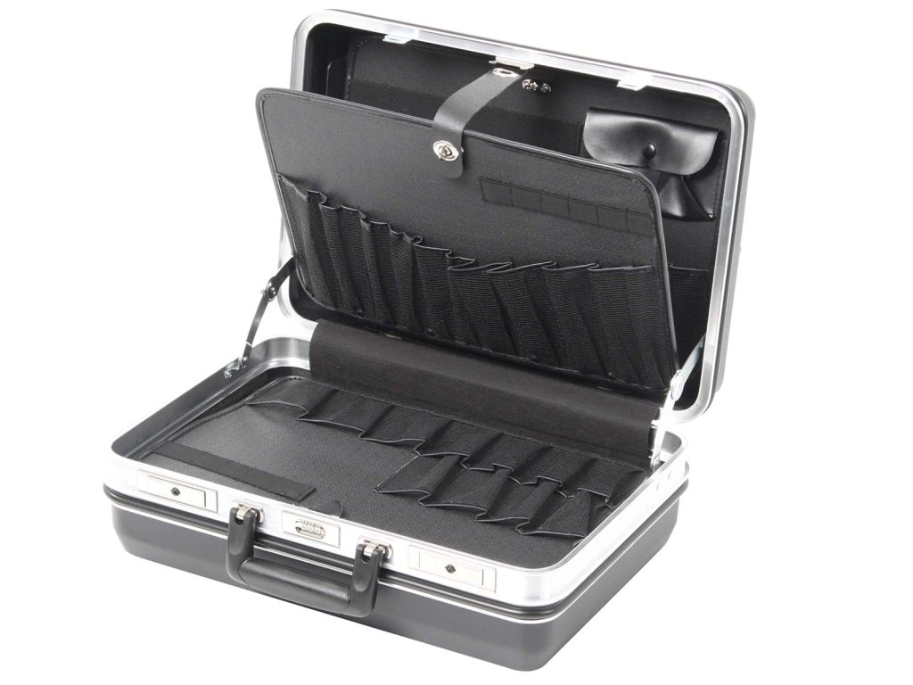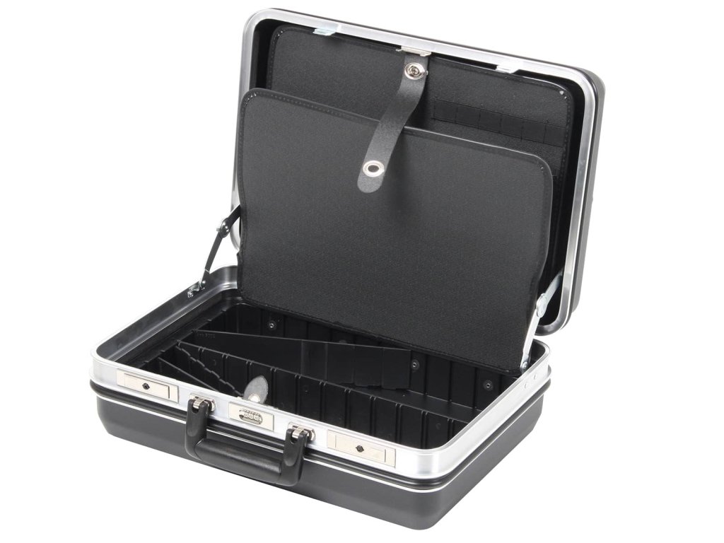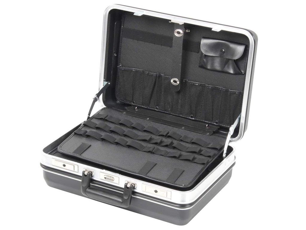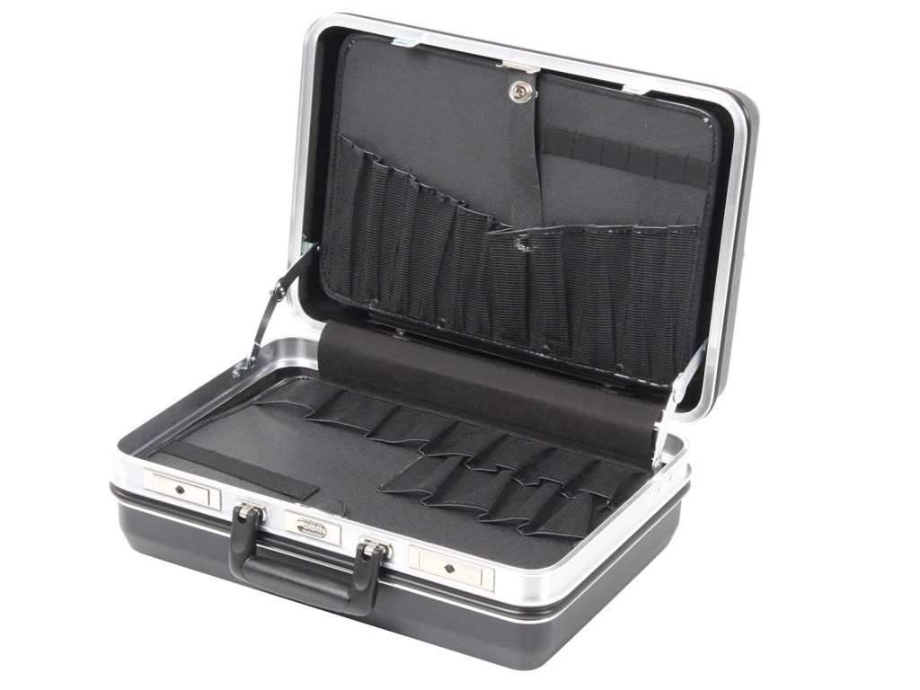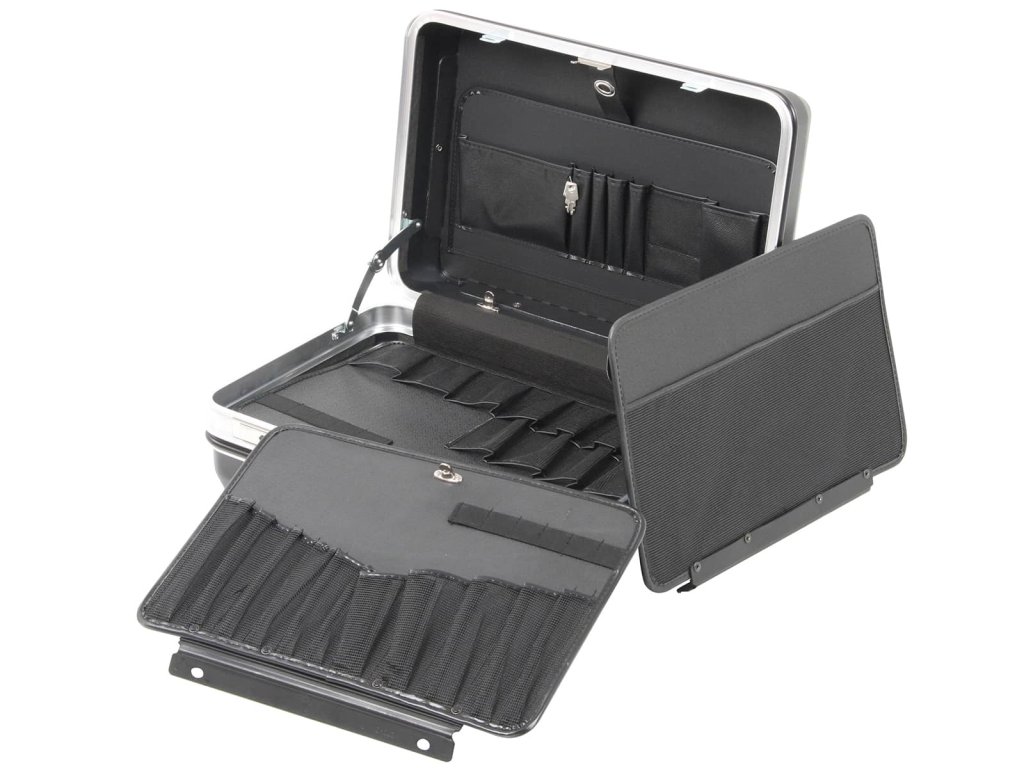 Der abschließbare Koffer, der auch gerne von Lehrlingen genutzt wird, steht entweder als klassischer Werkzeugkoffer in verschiedenen Größen zur Verfügung, als auch als Leerkoffer inkl. Schaumstoff, in dem man ohne Probleme auch Messgeräte sicher und platzsparend transportieren kann.