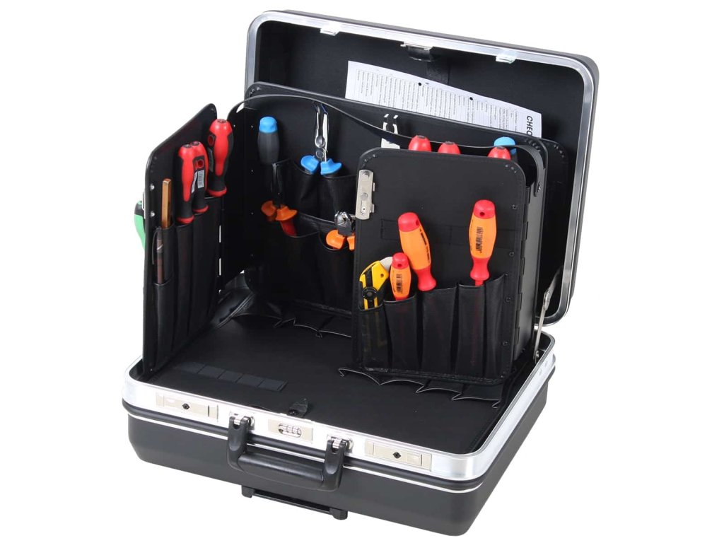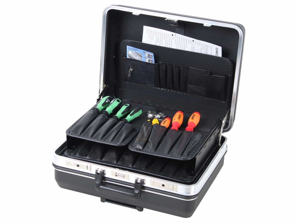 Der abschließbare Koffer, der auch gerne von Lehrlingen genutzt wird, steht entweder als klassischer Werkzeugkoffer in verschiedenen Größen zur Verfügung, als auch als Leerkoffer inkl. Schaumstoff, in dem man ohne Probleme auch Messgeräte sicher und platzsparend transportieren kann.