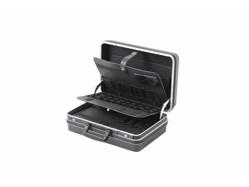 Der traditionell bei uns im Werk hergestellte CLASSIC Werkzeugkoffer vereint alle guten Eigenschaften eines Werkzeugkoffers für den Profieinsatz. Neben einer tiefgezogenen, hochschlagfesten ABS-Pro Schale, besteht der Koffer zusätzlich aus einem extrem stabilen, speziell gehärteten Aluminiumrahmen. Gerade für den täglichen Dauereinsatz ist der CLASSIC Werkzeugkoffer der passende Begleiter für Elektriker, Installateure oder ihre Lehrlinge. Hochwertige Druckgussschlösser, sowie ein geschraubter und ergonomisch geformter Griff runden die Features dieses Koffers MADE IN GERMANY ab.