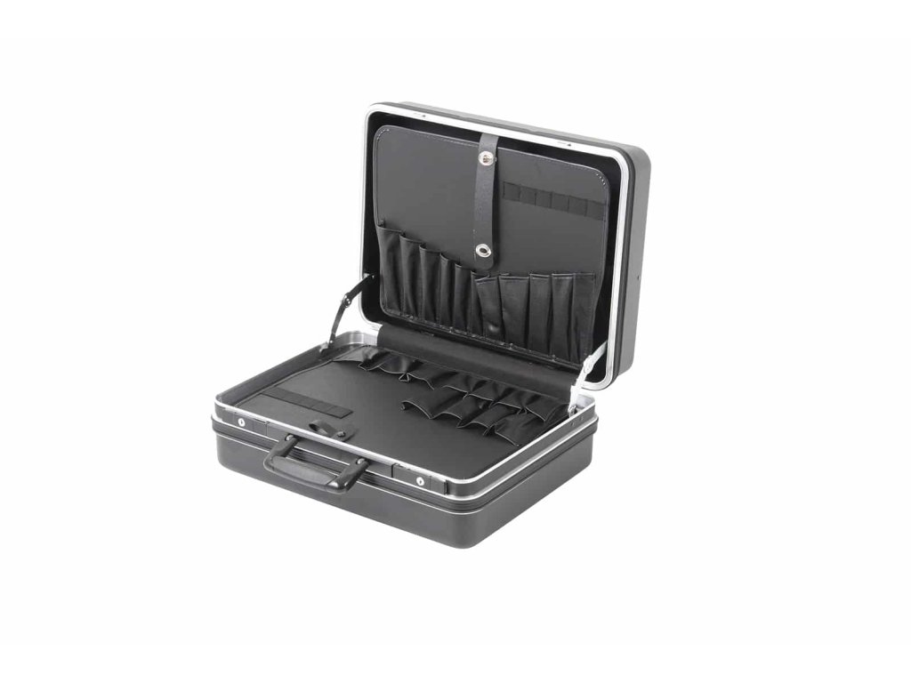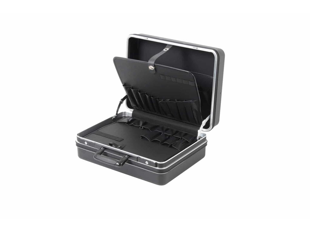 Der traditionell bei uns im Werk hergestellte CLASSIC Werkzeugkoffer vereint alle guten Eigenschaften eines Werkzeugkoffers für den Profieinsatz. Neben einer tiefgezogenen, hochschlagfesten ABS-Pro Schale, besteht der Koffer zusätzlich aus einem extrem stabilen, speziell gehärteten Aluminiumrahmen. Gerade für den täglichen Dauereinsatz ist der CLASSIC Werkzeugkoffer der passende Begleiter für Elektriker, Installateure oder ihre Lehrlinge. Hochwertige Druckgussschlösser, sowie ein geschraubter und ergonomisch geformter Griff runden die Features dieses Koffers MADE IN GERMANY ab.