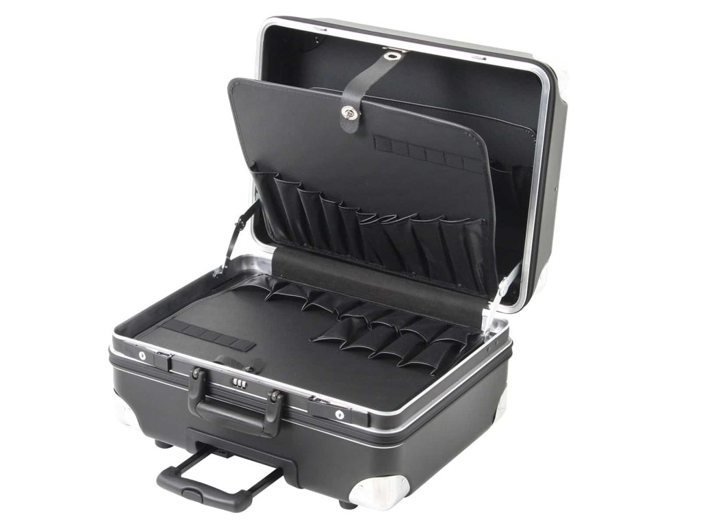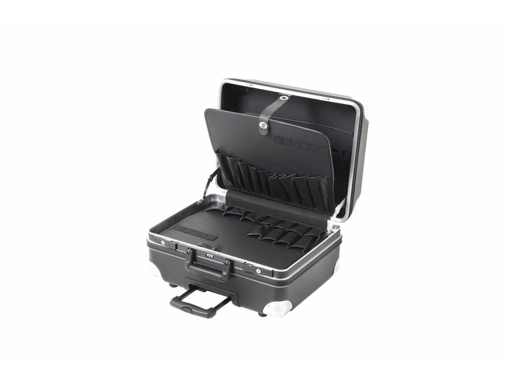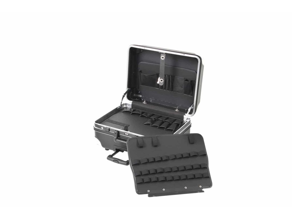 37 ltr. Volumen, solide Komponenten, Trolleyfunktion, Aluminiumecken. Das sind nur einige der überzeugenden Features des ROBUST Werkzeugkoffers von Hepco&Becker. Diese Serie ist für den professionellen Einsatz ausgelegt. Sie besticht durch die Ausstattung, Robustheit und ihre Handhabung. In ihr findet nicht nur der Schraubenschlüssel Platz, auch für Bohrmaschinen oder größere Geräte ist in der Bodenschale reichlich Platz eingeplant. Durch die arretierbare Trolleyfunktion lässt sich der Koffer jederzeit kinderleicht von Montagestelle zu Montagestelle bewegen. Ein Zinkdruckgussschloss, optional mit TSA-Schließzylinder, schützt den Inhalt vor Langfingern.
