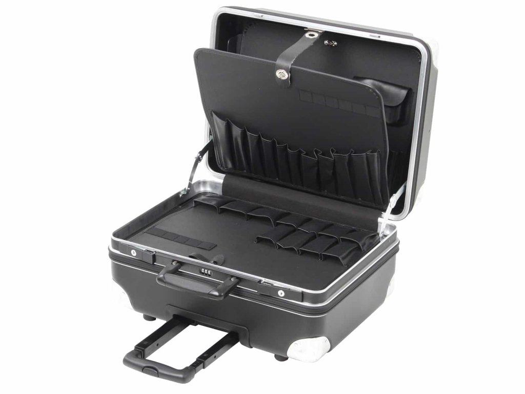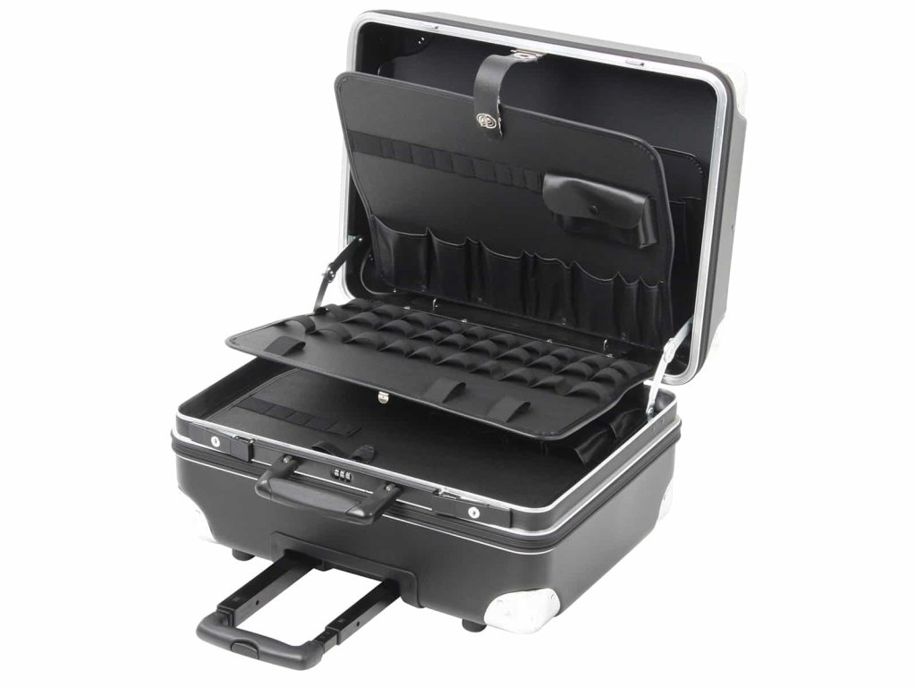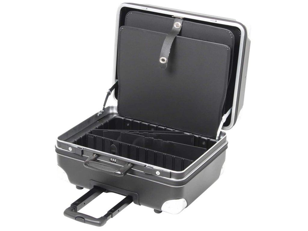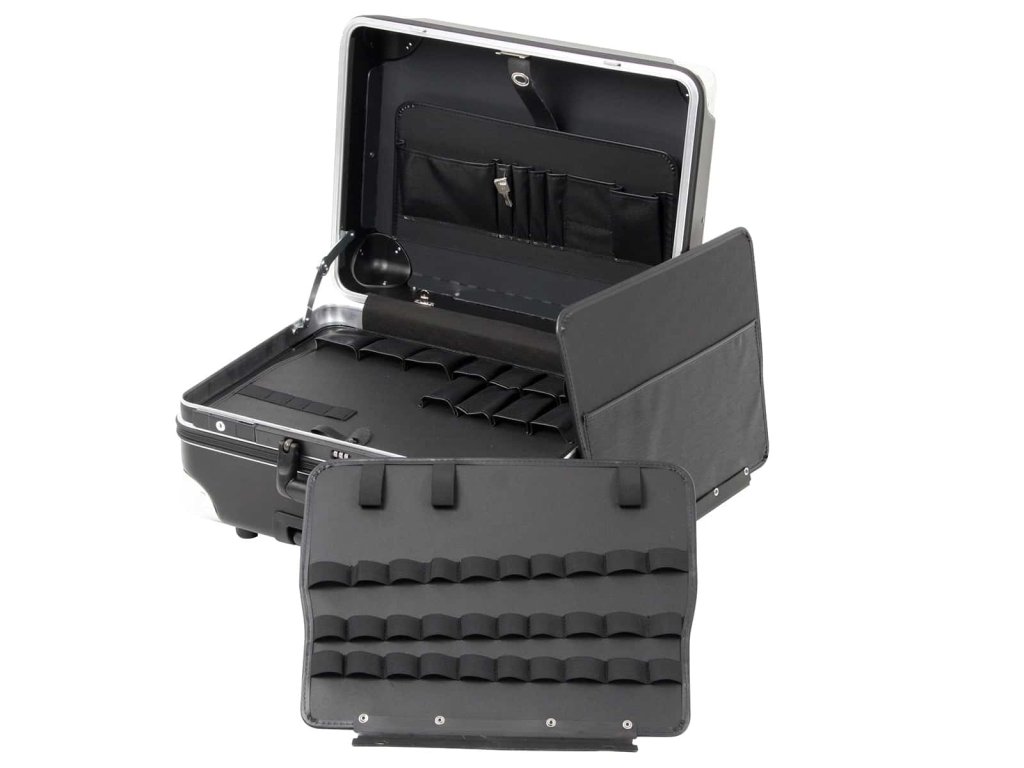 37 ltr. Volumen, solide Komponenten, Trolleyfunktion, Aluminiumecken. Das sind nur einige der überzeugenden Features des ROBUST Werkzeugkoffers von Hepco&Becker. Diese Serie ist für den professionellen Einsatz ausgelegt. Sie besticht durch die Ausstattung, Robustheit und ihre Handhabung. In ihr findet nicht nur der Schraubenschlüssel Platz, auch für Bohrmaschinen oder größere Geräte ist in der Bodenschale reichlich Platz eingeplant. Durch die arretierbare Trolleyfunktion lässt sich der Koffer jederzeit kinderleicht von Montagestelle zu Montagestelle bewegen. Ein Zinkdruckgussschloss, optional mit TSA-Schließzylinder, schützt den Inhalt vor Langfingern.