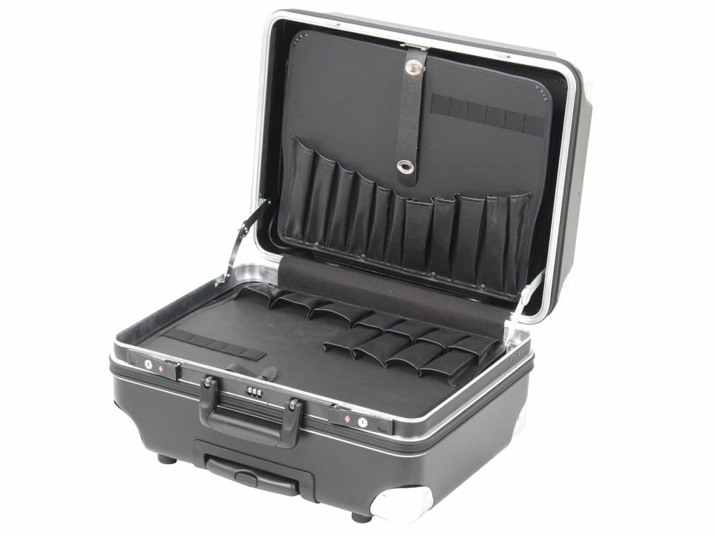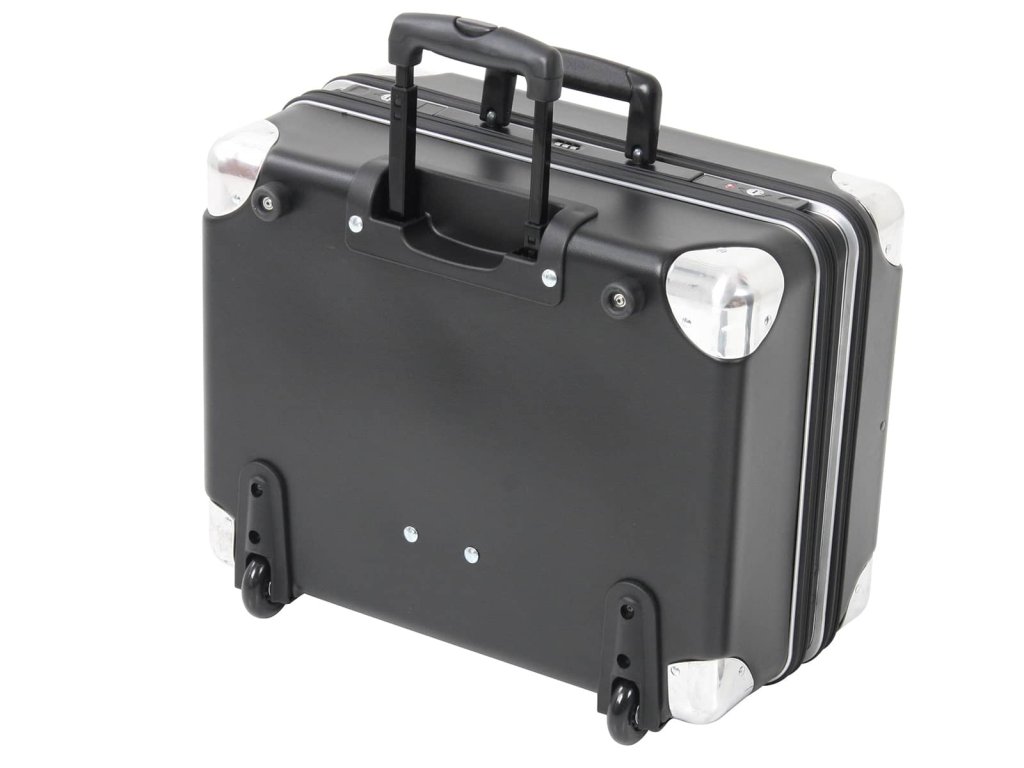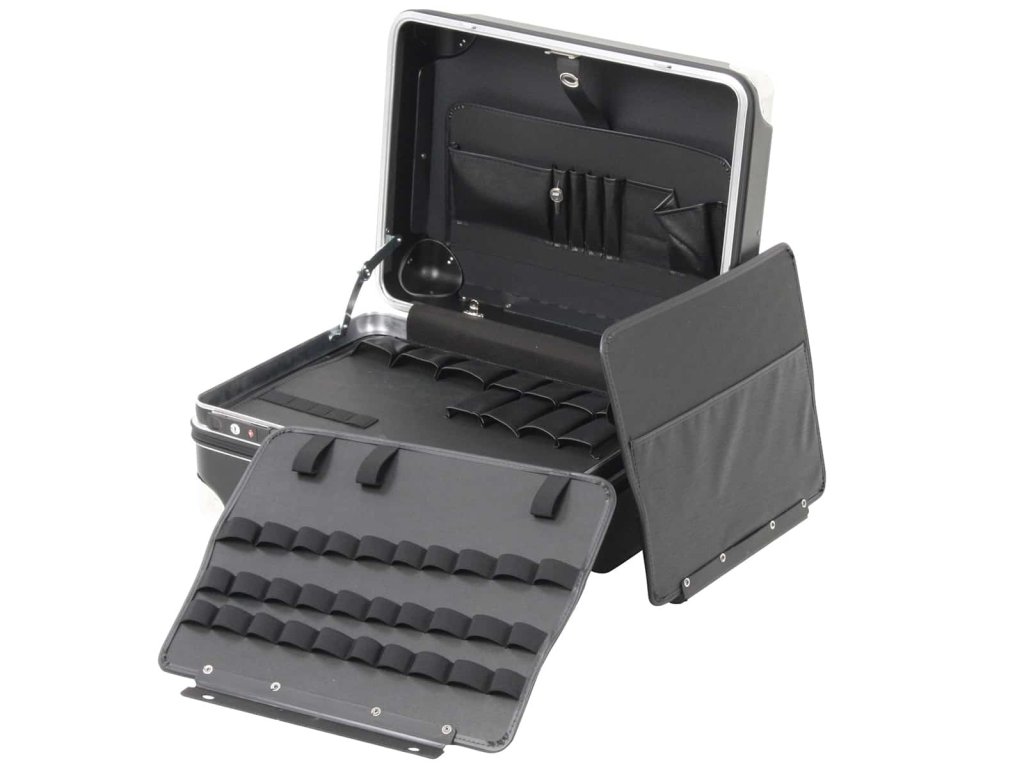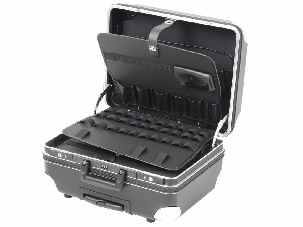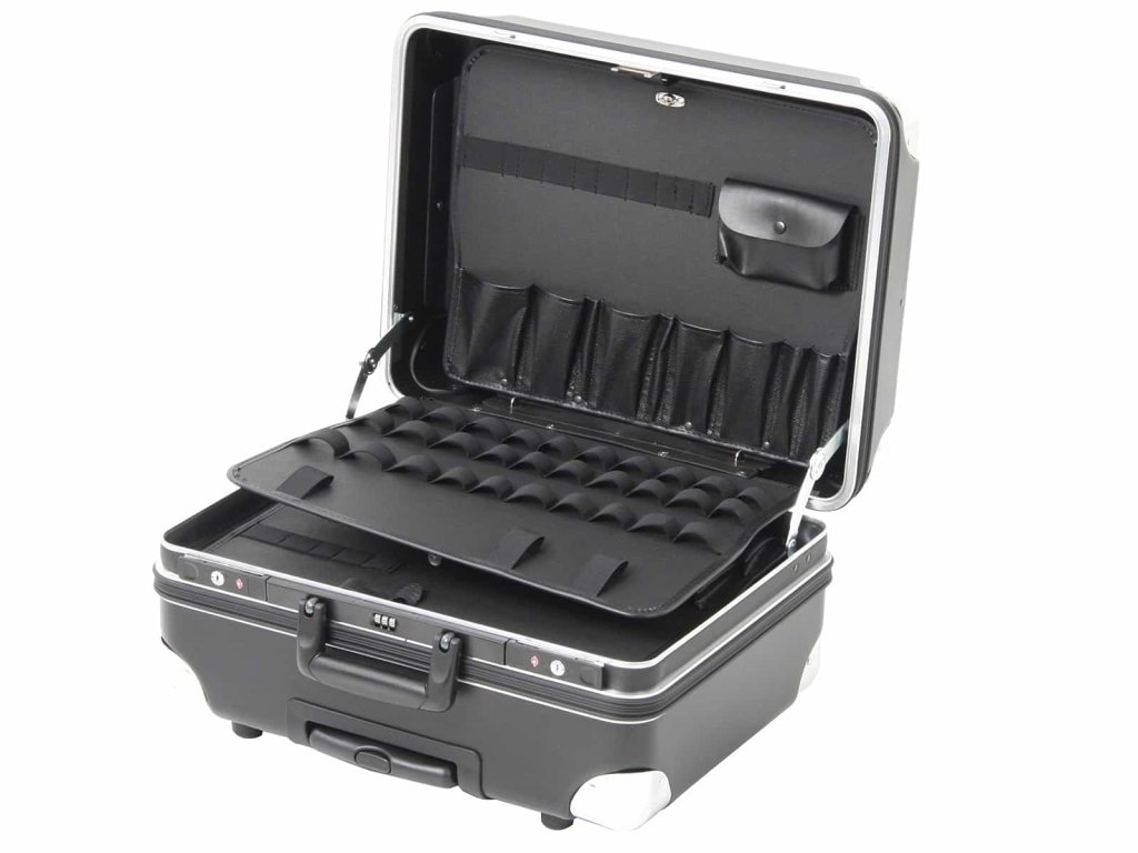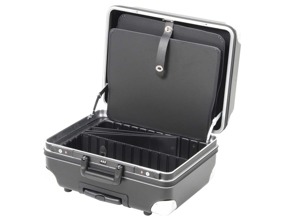 37 ltr. Volumen, solide Komponenten, Trolleyfunktion, Aluminiumecken. Das sind nur einige der überzeugenden Features des ROBUST Werkzeugkoffers von HEPCO&BECKER. Diese Serie ist für den professionellen Einsatz ausgelegt. Sie besticht durch die Ausstattung, Robustheit und ihre Handhabung. In ihr findet nicht nur der Schraubenschlüssel Platz, auch für Bohrmaschinen oder größere Geräte ist in der Bodenschale reichlich Platz eingeplant. Durch die arretierbare Trolleyfunktion lässt sich der Koffer jederzeit kinderleicht von Montagestelle zu Montagestelle bewegen. Ein Zinkdruckgussschloss, optional mit TSA-Schließzylinder, schützt den Inhalt vor Langfingern.